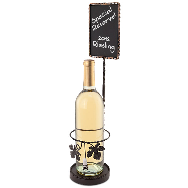 This is a multi-featured coaster is the perfect way to display bottles of wine where guests can easily identify the item with their descriptions written on the chalkboard. Or take it one step further, and write food pairings with the wine at a buffet.