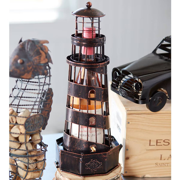 Cork Cage Lighthouse. Handmade from metal and finished with a soft brown patina, our Cork Cages feature whimsical accents and a hinged door to easily add corks.
