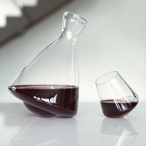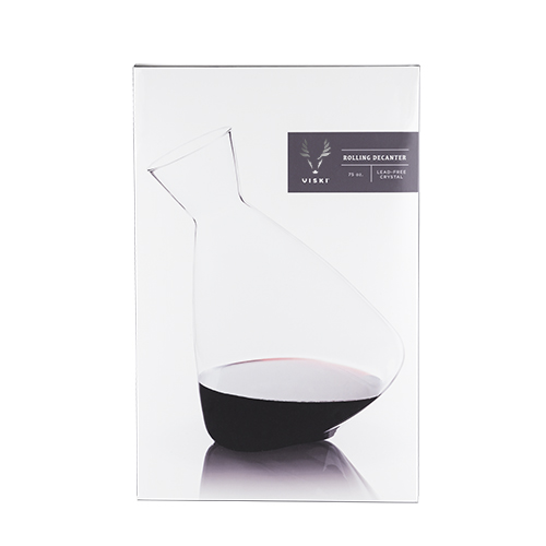 Experience the advantages of aeration through the angular form of this lead-free crystal rolling decanter. The delicate rounded body rotates in an arc around its convex base, triggering oxidation and allowing for the complex undertones of your chosen beverage to burgeon. A carefully designed modern statement piece, it sparks conversation anywhere you keep it.