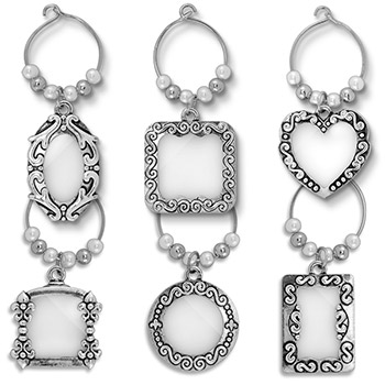 These charms are fantastic. Insert a picture of all invited to the gathering into the charms. Then they can mark their glass with the charm that has their face on it. It doesn't get easier than that. The Your Personal Charms can also be used as numbered markers. They come in 6 uniquely shaped designs.